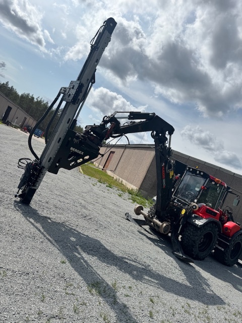 Borrmast eller pålmast med upp till 6,5 meters matningslängd för grävmaskin eller traktorgrävare.