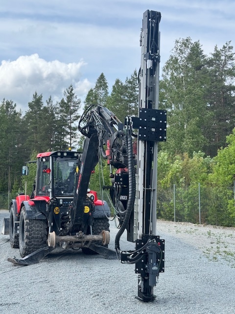 Borrmast eller pålmast med upp till 6,5 meters matningslängd för grävmaskin eller traktorgrävare.